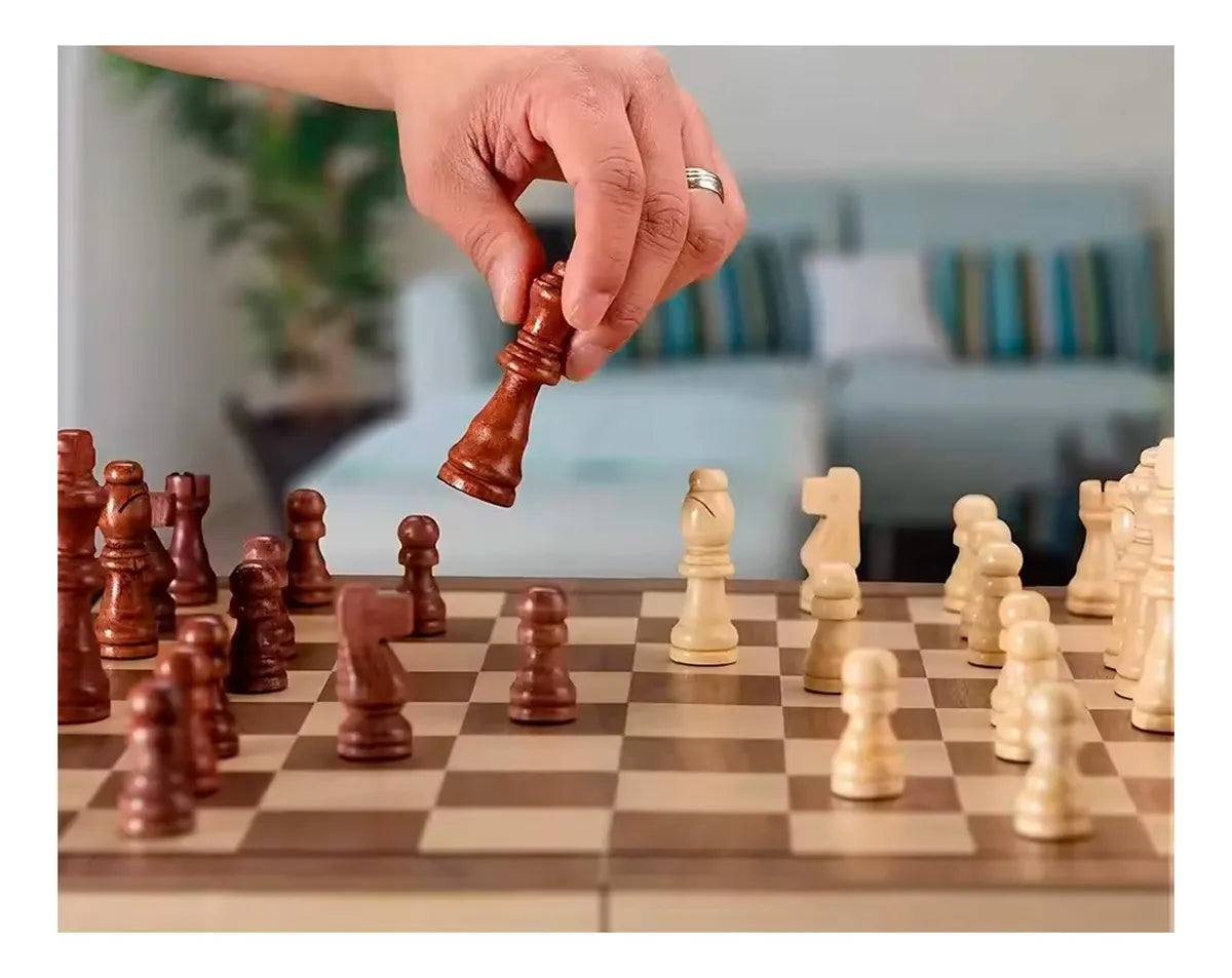 El diseño plegable facilita guardar y transportar el juego, mientras que las piezas magnéticas aseguran que cada jugada se mantenga estable, incluso si el tablero se mueve un poco. Esto ayuda a que puedas jugar partidas más largas y estratégicas sin perder el orden sobre el tablero. Además, su construcción en madera le da un toque clásico y elegante que lo vuelve un gran complemento de decoración o un regalo ideal para amantes de los juegos de mesa.