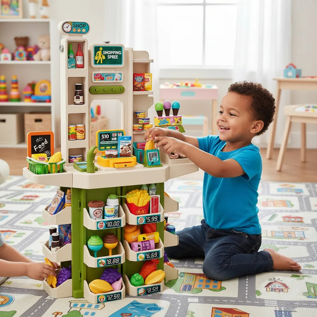 Al abrir la caja descubrirás una experiencia completa: registradora, productos de juguete, dinero ficticio, carrito o cestas, y múltiples accesorios que permiten simular un supermercado real. Esto despierta el interés de los niños (y de los padres) porque no solo es un juguete, sino una oportunidad para aprender — ordenar, contar, “pagar”, socializar, imaginar ventas o compras, y desarrollar habilidades desde la infancia.
